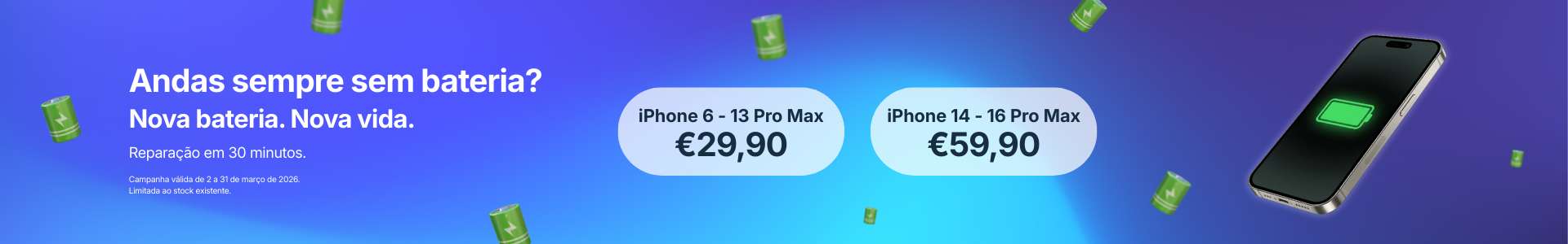 Reparações rápidas, substituição de bateria na hora, sem nunca comprometer a qualidade do serviço.
